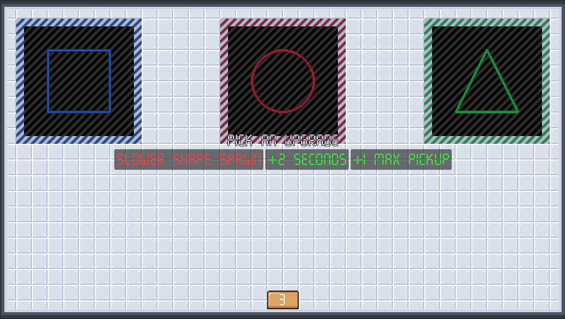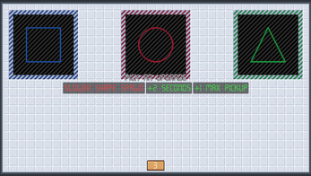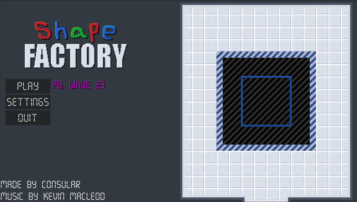 You just got hired at the Shape Factory! The company recently discovered the Shape Printer Automated by Magic (or S.P.A.M) for short, which is the lovely name they gave to a magical cardboard box that outputs an infinite amount of matter! What better use for such a thing then to mass produce geometry? They only have one, so it's your job to sort the shapes into their matching depots and ship them out. Try your best to not get fired.